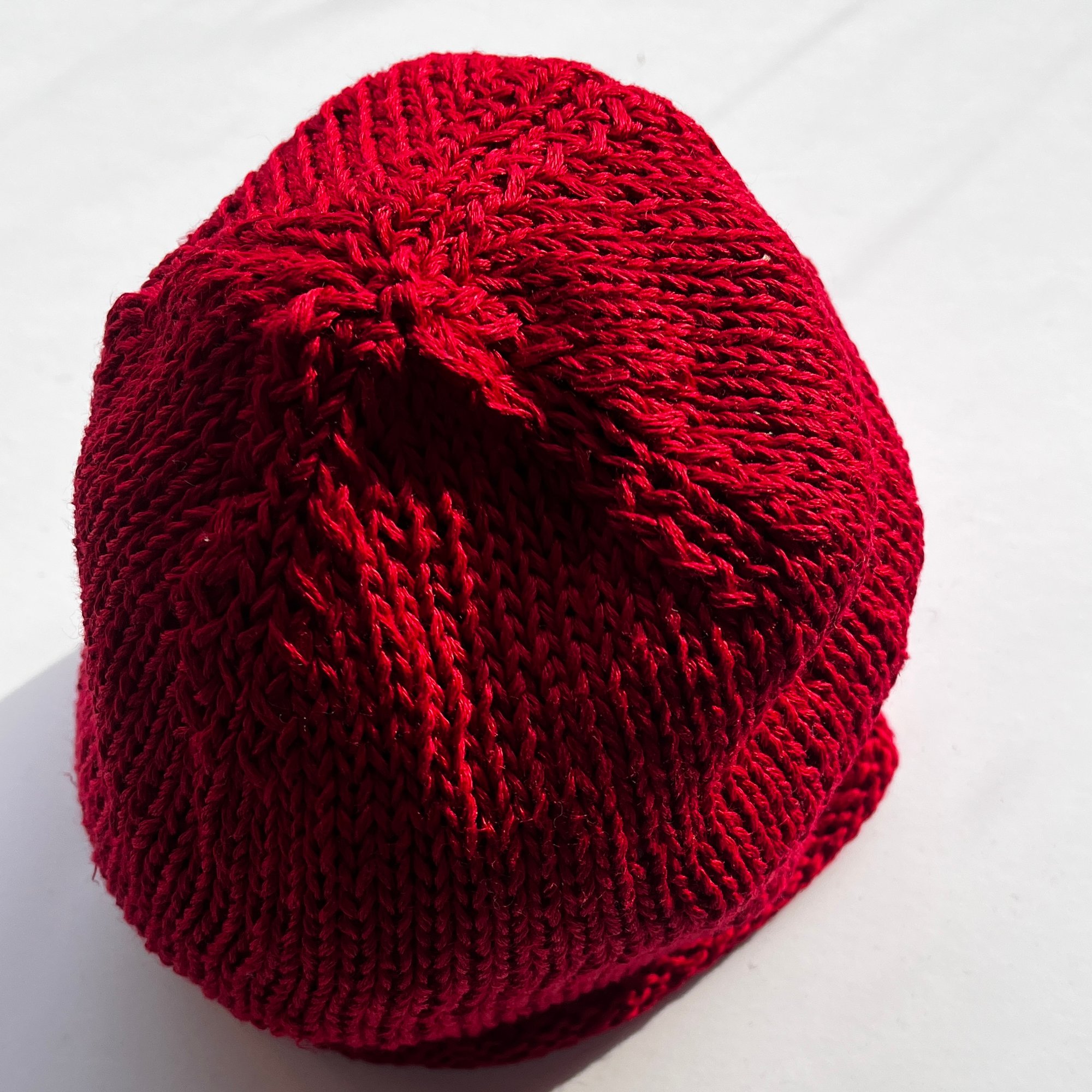 Bright Red Pure Linen Black Isle Beanie Hand Knitted