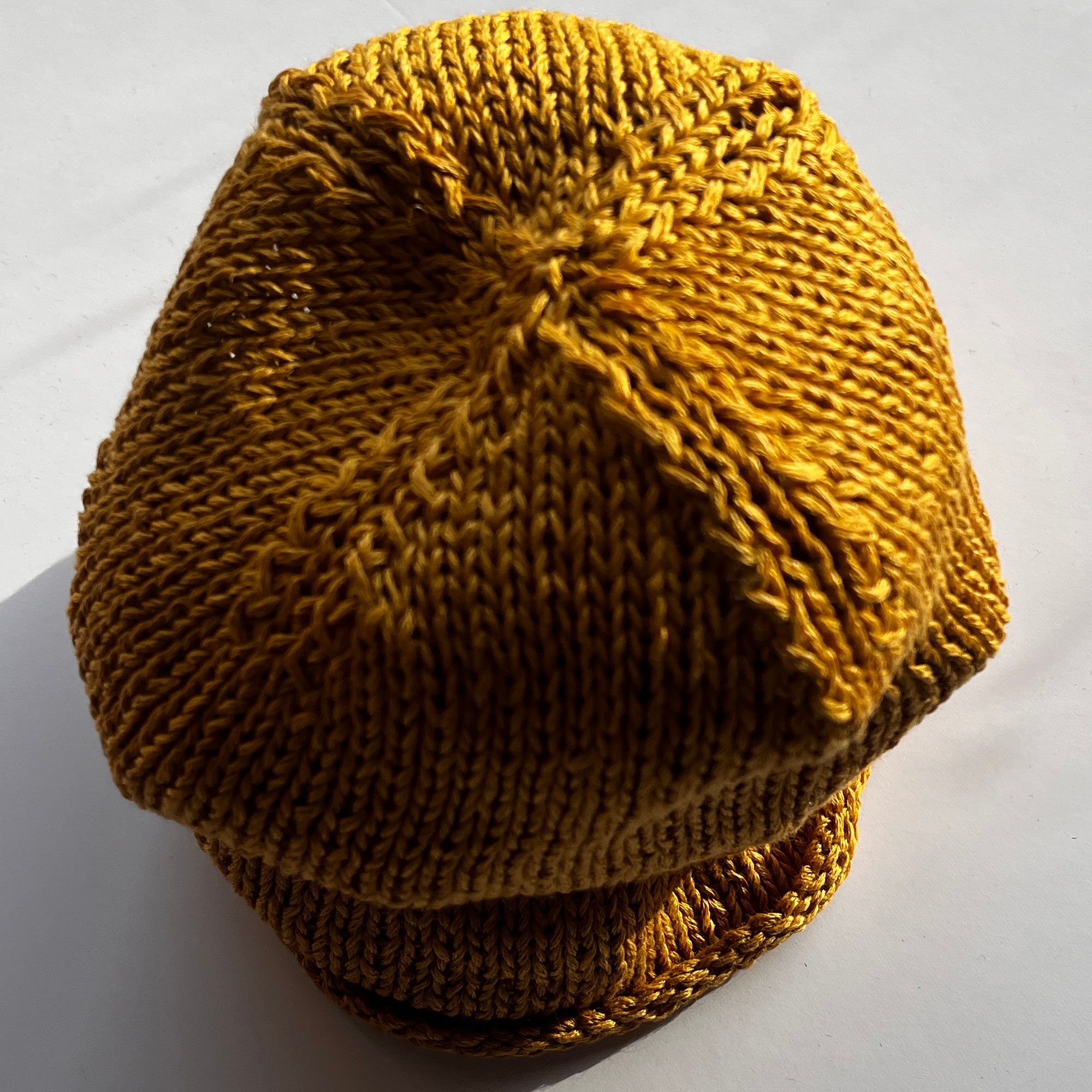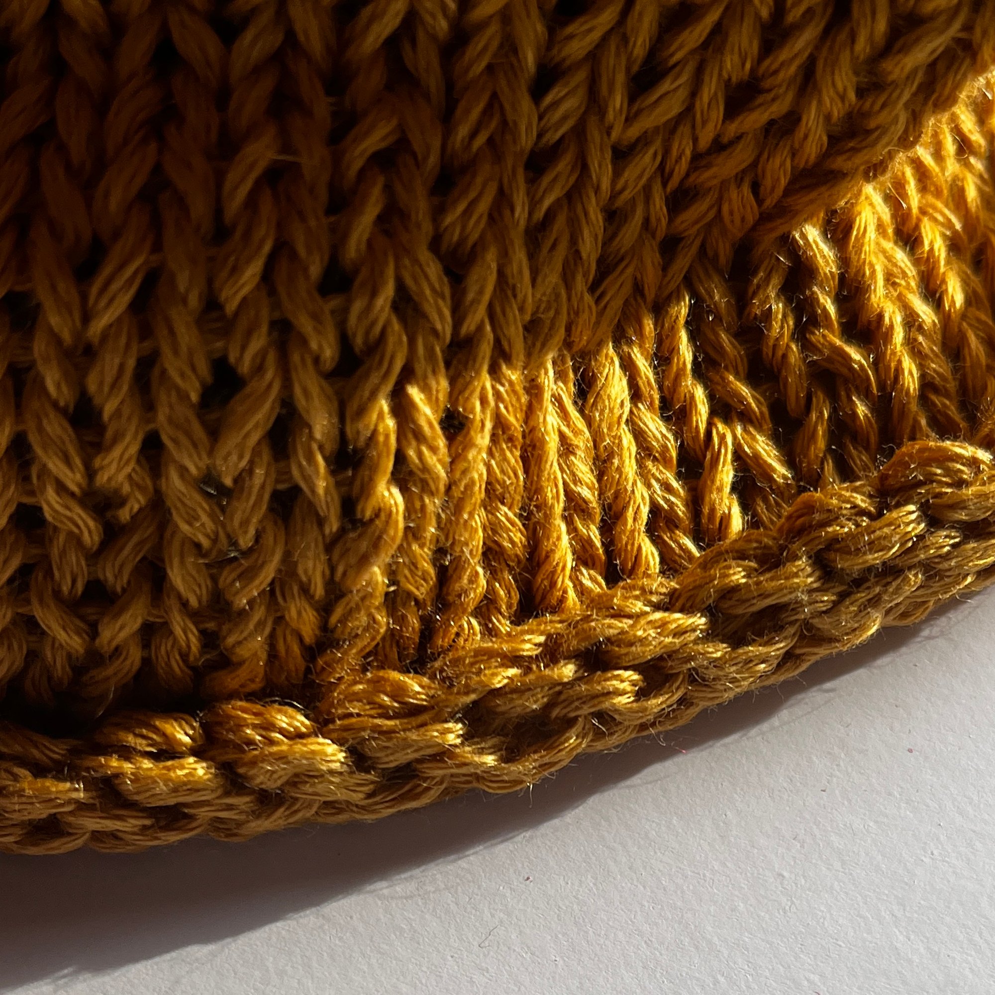 Pure Linen Bright Yellow Black Isle Beanie Hand Knitted